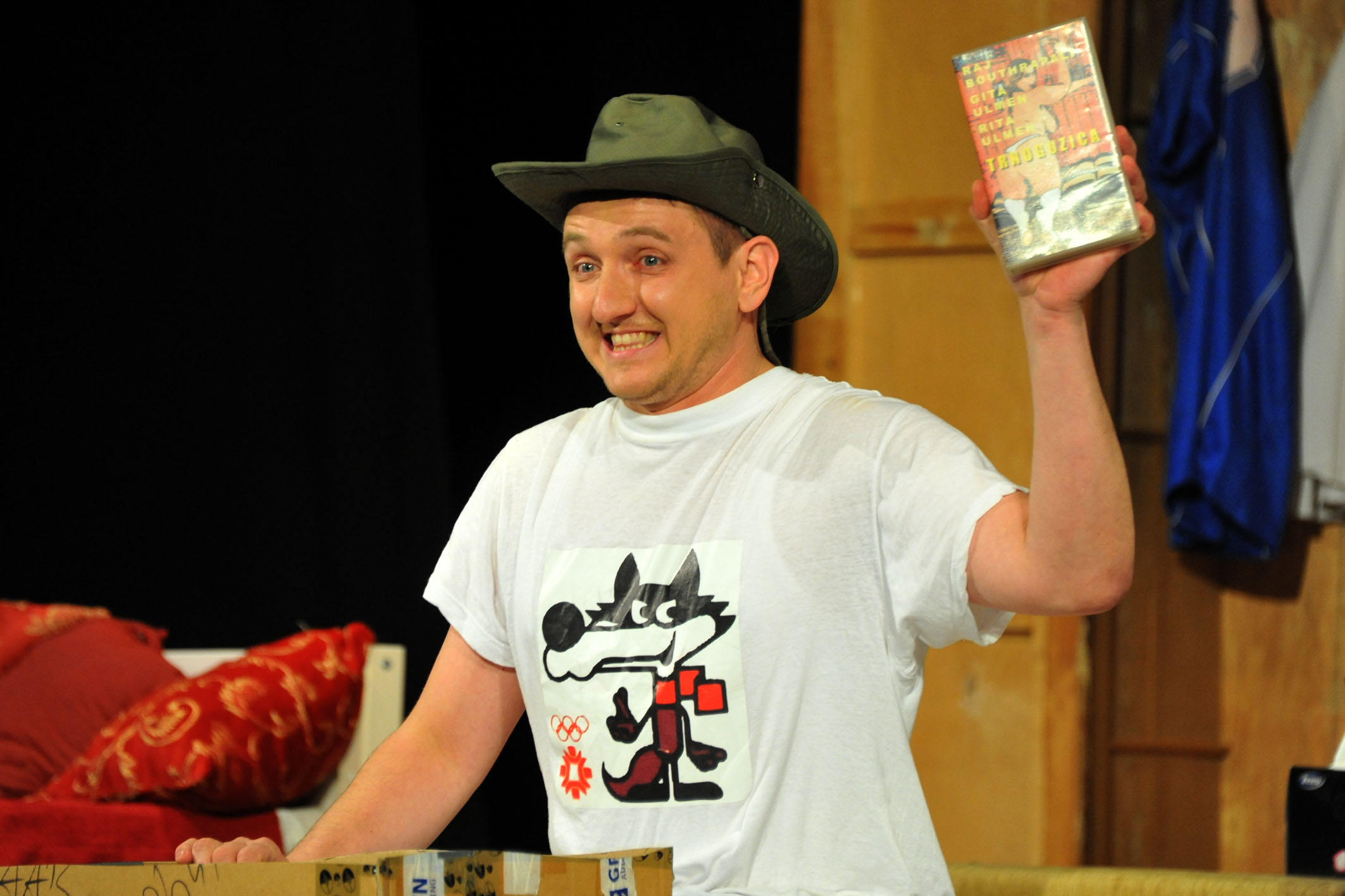 Gradsko kazalište Joza Ivakić, Vinkovci: Andrew Goffman, (Slučajni) Perverznjak, red. Goran Grgić Predstava (Slučajni) Perverznjak govori o muškarcima ili barem većini muškaraca. Naime, radi se o problemima s kojima se muška populacija susreće tijekom svog spolnog sazrijevanja, silnoj znatiželji i jednako tako silnim nespretnim i nesretnim događajima vezanim uz otkrivanje spolnosti, razumijevanje suprotnog spola, ostvarivanje veza i slično. Andrija Komadina (Vladimir Andrić) danas je odrastao muškarac i iz svoje pozicije prepričava publici kako je postao perverznjak. Međutim, naslov predstave ne odgovara istini, radi se o igri riječima i dobrom marketinškom potezu. Što je najbolje, predstava je izvrsna i bavi se puno dubljim stvarima od onih koje sam naslov daje naslutiti. Tako će nas Andrija u formi ispovjednog teatra, začinjenog pregrštom komičnih situacija, lascivnosti (poprilično), ali i tuge i suza, provesti kroz svoj život muškarca od trenutka kada se sa šest godina prvi put igrao doktora sa susjedom, pronalaska očeve zalihe pornografskih videokazeta, pokušaja i promašaja osvajanja djevojaka, primjenjivanja filozofije pornografske industrije na iste, sve do upoznavanja one prave, smirivanja, rođenja kćeri i otkrivanja pravih vrijednosti u životu. Grgić i Radaković obavili su jako dobar posao u inscenaciji ove monodrame i to pogotovo u segmentima dramaturgije i lokalizacije. Što se tiče same forme i teksta original je zadržan sukladno ugovoru o licenci, međutim prebacivanje toponima, sportskih događaja, prehrambenih proizvoda, šala i poštapalica je jedno od najboljih koje sam vidio u zadnje vrijeme. Sve je jednostavno uklopljeno vrlo precizno i promišljeno. Osim toga, upravo lokalizacija daje predstavi, usprkos lascivnosti (u programskoj knjižici piše kako predstava nije za mlađe od 15 godina, i u pravu su) dodatni šarm i budi nostalgične uspomene kroz pojavljivanje Branka Kockice, Kraš ekspresa, Tvornice namještaja Standard, televizora Niš, animiranih filmova Poncho i Toro… Ti su trenutci ugrađeni u Andrijino sjećanje i odvijaju se u obliku dobro poznatih reklama na projekcijskom platnu koje ujedno služi i kao zid sobe. Osim toga silna lascivnost kojom je prožeta izvedba nije upotrijebljena kao puki efekt za smijeh na prvu, nego je dramaturški opravdana i ne smeta, iako je istina da pleše po samom rubu vulgarnosti. Jedina sitnica koja je mogla biti bolja je uvodna scena koja jednostavno traje predugo i u njoj se neprestano ponavljaju jedni te isti motivi (sjećanja na djetinjstvo kroz spomenute reklame). Jasno je da je potrebna neka gradacija i uvod, ali kraćenjem toga ne bi se izgubilo na smislu, a predstava bi dodatno dobila na dinamičnosti. Sama scena (scenograf Dubravko Mataković) je praktično minimalistička te sadrži osnovne elemente potrebne za radnju poput kreveta, ormara, fotelje, televizora i video uređaja. Kostimi također ne izgledaju pretenciozno, međutim u tome je i poenta – vjerni su vremenu i sadržaju o kojem se govori pa ćemo tako vidjeti Vučka na majci, dres Cibalije, zgodnu Andrijinu majicu koja zbog pretjerane uporabe škroba stoji uspravno na krevetu… Kostimografiju su osmislili studenti 2. godine preddiplomskog studija Kazališnog oblikovanja Umjetničke akademije u Osijeku Larisa Vukić, Suzana Šambar, Matija Dijanović, Lorna Kalazić, Rahela Šajinović, Tončica Knez i Krešimir Tomac pod mentorstvom Zdenke Lacine. Vladimir Andrić imao je najtežu zadaću jer je sat i pol izložen pogledima publike u kontinuirano brzom i energičnom ritmu u kojem se izmjenjuju tužni, sretni i apsurdni trenutci – i to je odradio izvrsno. Doduše ispočetka je bio pomalo nesiguran i ukočen, međutim kada se zagrijao i kada je radnja krenula potpuno je kupio publiku koja ga je pažljivo pratila do kraja, nagradivši njegov trud velikim pljeskom. Ovaj put sve je bilo na mjestu – glas i govor, pokret, mimika, geste, vrlo dobro razrađen lik s puno karakternih nijansi koje se često smjenjuju. Posebno je uvjerljiv i dopadljiv bio u scenama kada prenosi svoje verzije seksualnih odnosa s brojnim ženama u životu, a onda prizna da je lagao i ispriča pravu verziju priče ili kad vozi suprugu u bolnicu na porod. (Slučajni) Perverznjak kazališta Joza Ivakić iz Vinkovaca, zasigurno je nova hit predstava. Kombinacija dobrog, životnog temelja, Grgićeva i Radakovićeva suradnja na podlozi i inscenaciji te Andrićeva scenska izvedba tvore funkcionalnu, zanimljivu, komičnu, toplu i iskrenu životnu priču muškarca, koju smo svi prošli, ali rijetko se usudili javno o njoj govoriti.