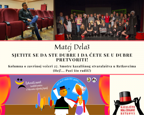 Možda je najpametnije odmah na početku, drito u glavu, reći ono što se mora pa da se ne zaboravi reći! Ono što nam kažu da moramo nekako provući, a skroz je dosadno, no budući da si moramo čestitati, najprije trebamo reći ono najmanje važno. Dakle, prepisujem iz mejla… sav videomaterijal objavljivan je na Vimeu i kanalu YouTube retkovačkog kazališta, a virtualni Susreti publici su bili dostupni za praćenje putem društvenih mreža (Facebook i Instagram profil Kazališta) i na mrežnoj stranici Kazališta… kroz retrospektivu objavljivane su fotografije sa Susreta prethodnih godina… retkovački su kazalištarci virtualne retkovačke susrete najavljivali i o njima govorili u televizijskim emisijama, novinskim glasilima i na portalima… i tako Kazalištu „Mika Živković“ Retkovci darovati vječni život u nekoj evaluaciji polumjesečnoga rada, takoreći obilježavanja tradicionalnih Susreta koji ne bi uspjeli niti bi preživjeli, od njih bi takoreći ostali samo spomenici da nije bilo entuzijastične količine ljudi prikovane za prijenosna računala i srodne rekvizite. A poslije toga reći i nešto ozbiljno, ali samo ako nas natjeraju na objektivnost.