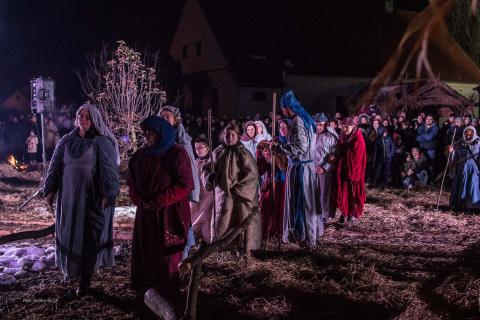 Svaki dio trebao je dobro posložiti kako bi se što vjerodostojnije dočaralo uprizorenje Isusova rođenja. Najmanja djeca-sudionici imala su samo sedam godina, dok se gornja dobna granica penjala preko 60 godina, no, sve su zamisli krenule od Marka Sabljakovića, umjetničkoga ravnatelja Kazališta ''Mika Živković'' koji je sve posložio, a svjetlom je bio obasjan svaki dio priče. Za potrebe uprizorenja imali su konja, magarca, guske i ovce, te sve ono što bi moglo poslužiti kao odličan dekor za lijep prizor.